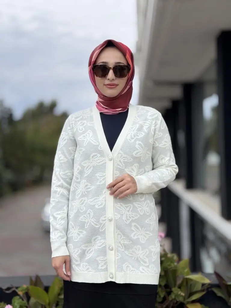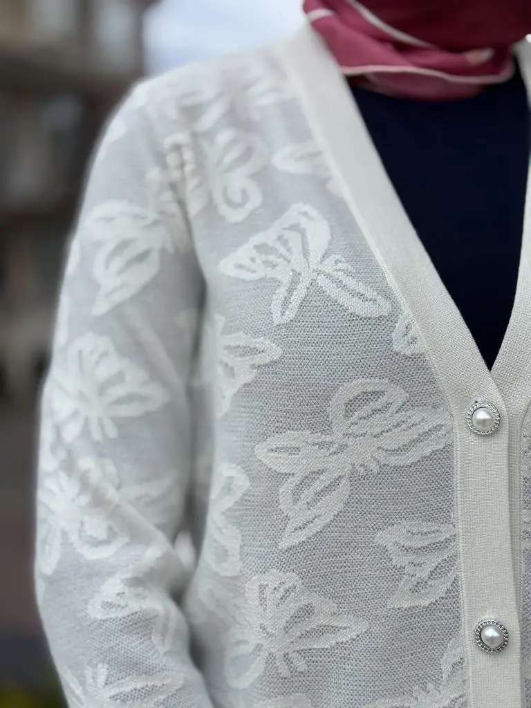 Tığ Triko Kelebek Sim Jakarlı Triko Hırka HRK21853