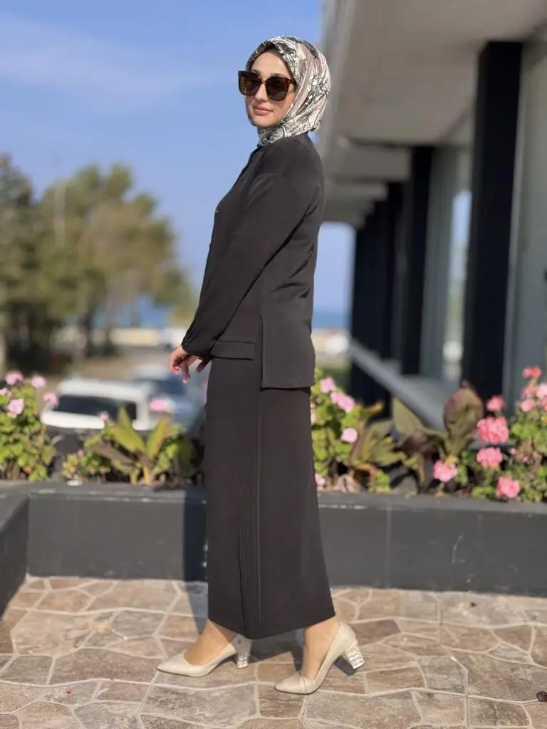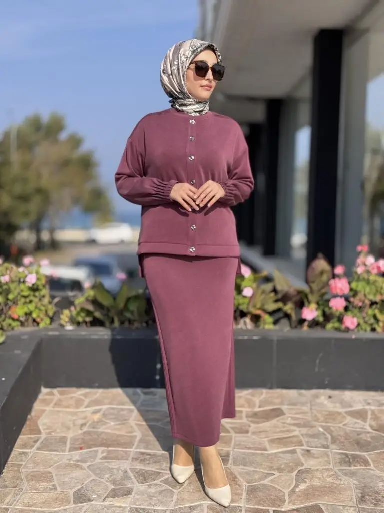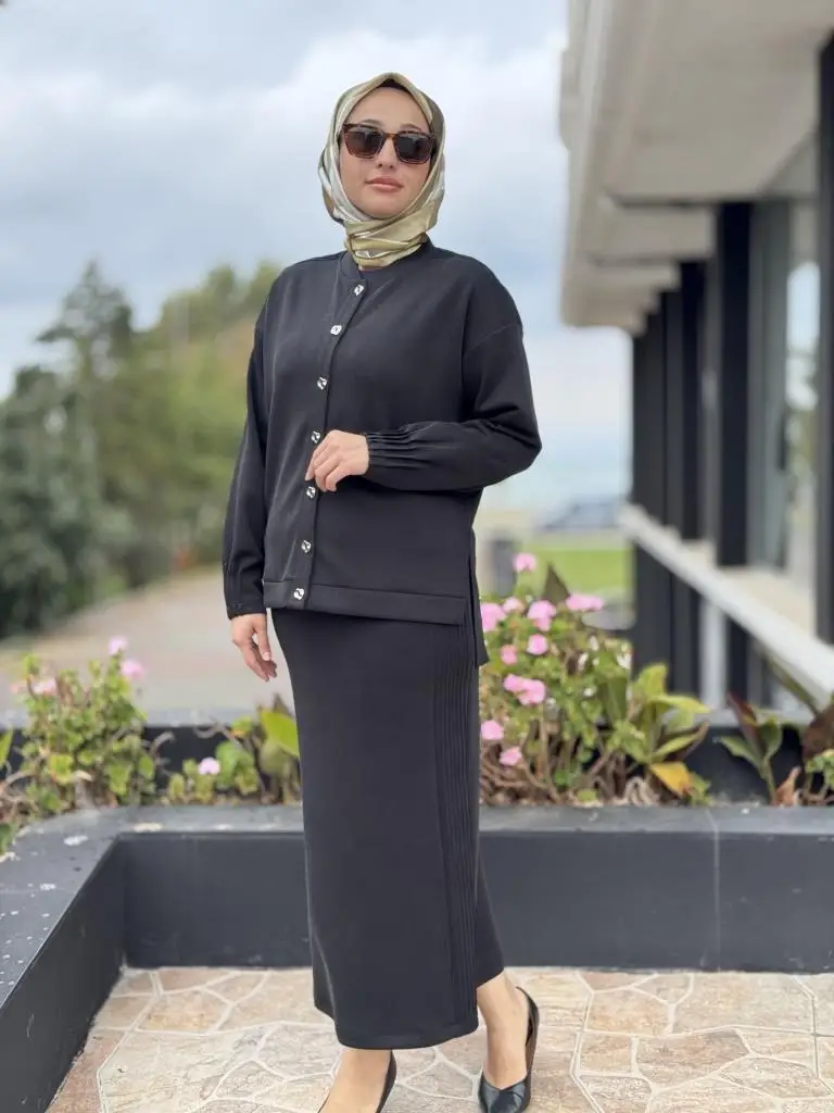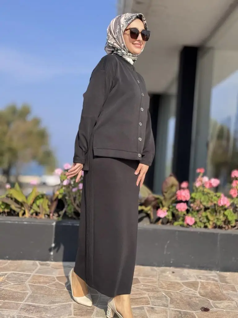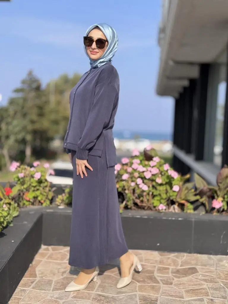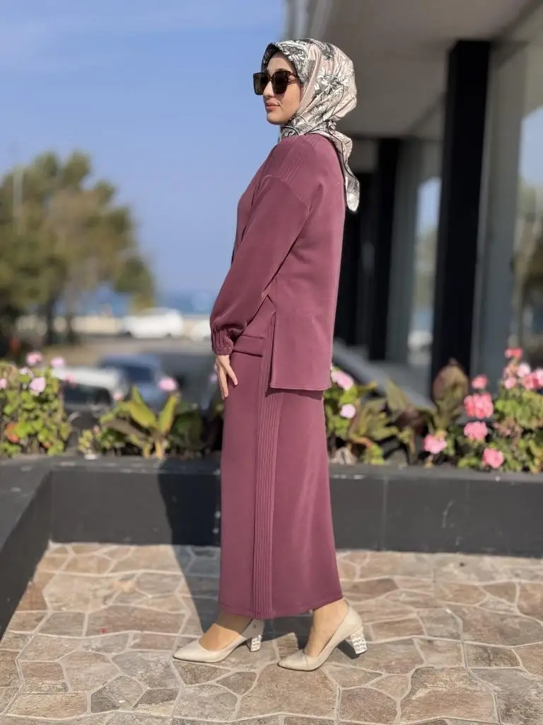 Tığ Triko Nervür Detaylı Etekli Takım TKM5029
