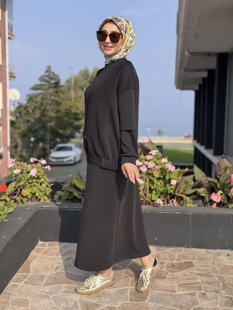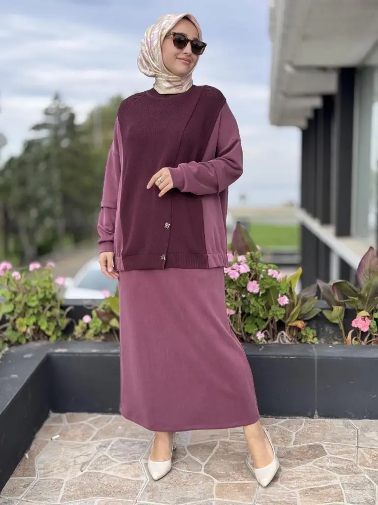 Tığ Triko Triko Maxi Düğmeli Etekli Takım TKM5030