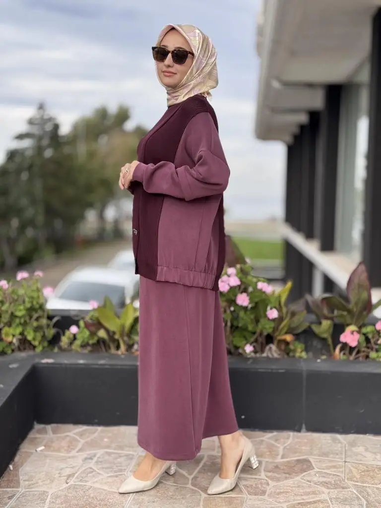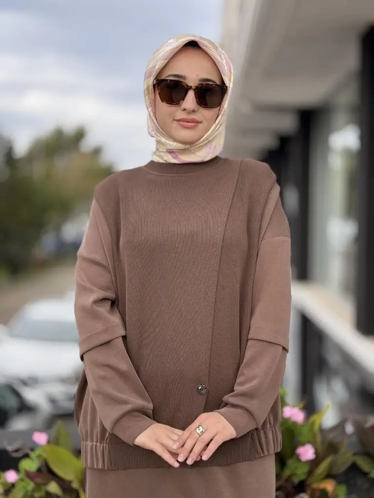 Tığ Triko Triko Maxi Düğmeli Etekli Takım TKM5030.