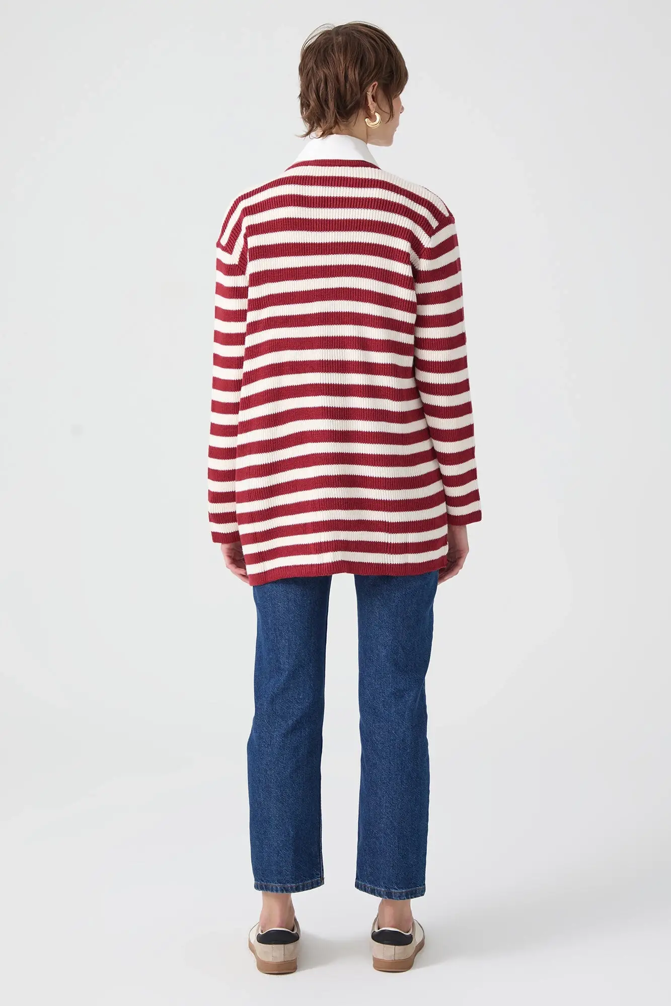 Touche Gold Düğmeli Çizgili Uzun Hırka 23F1XD166