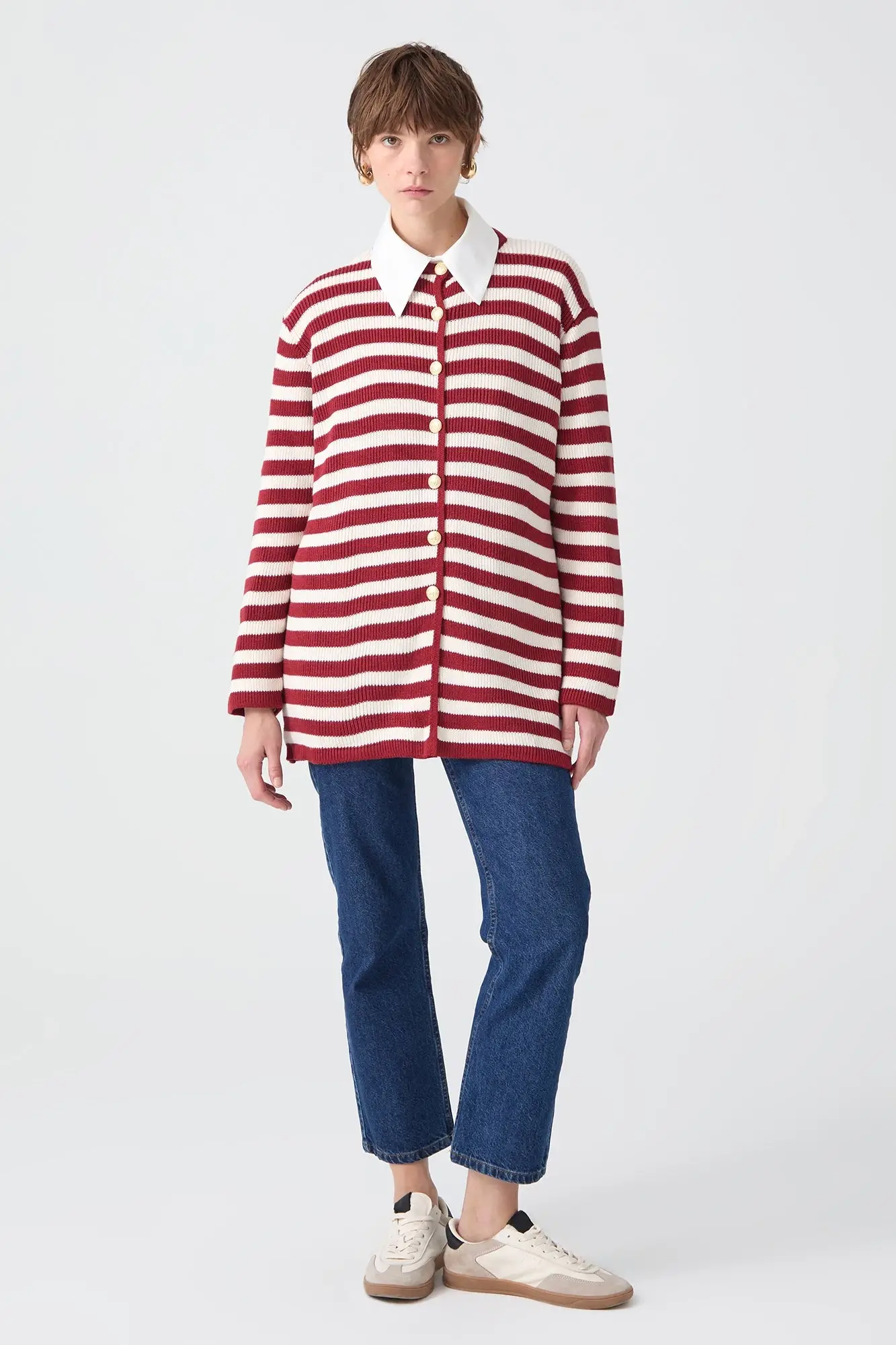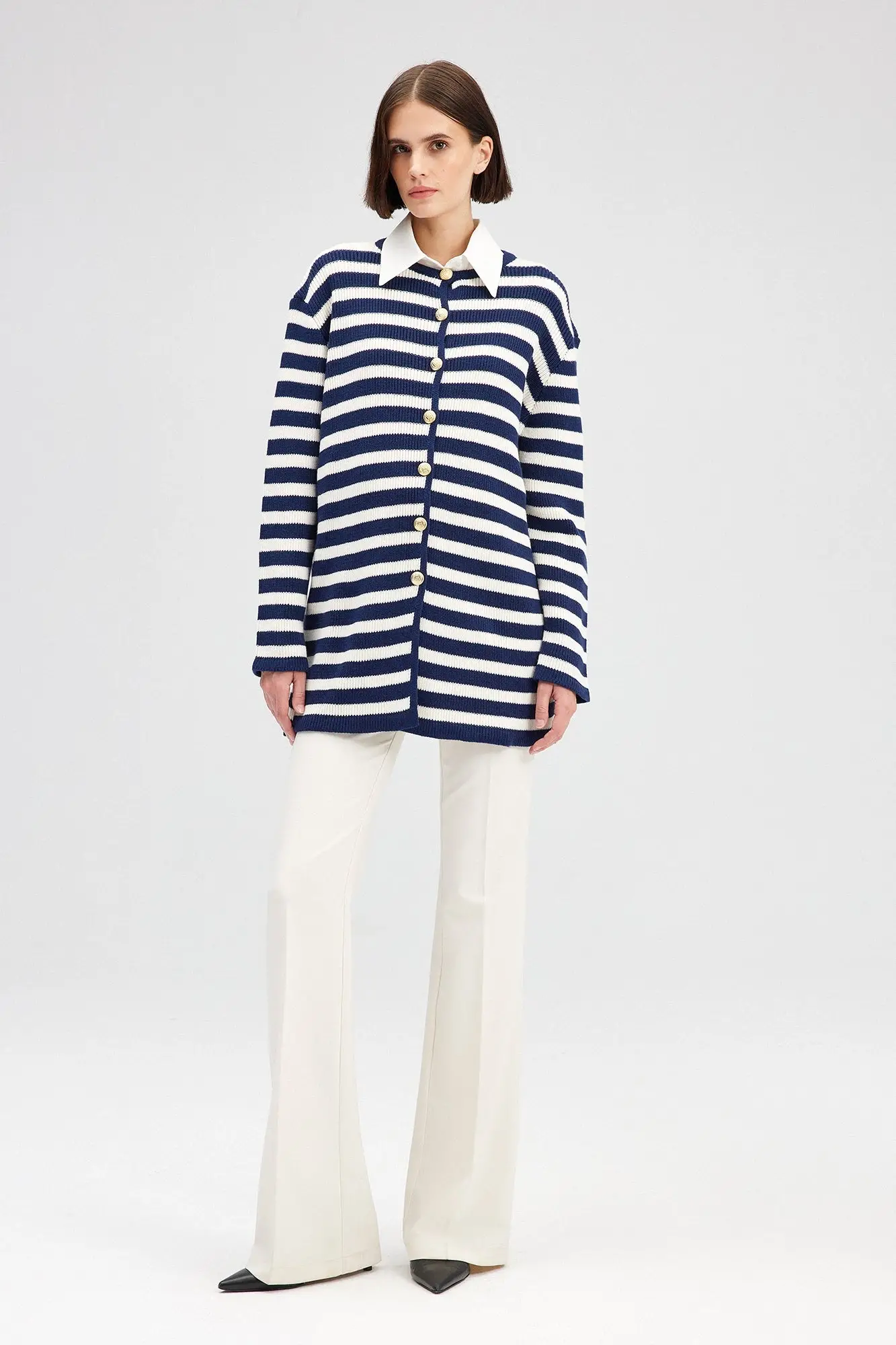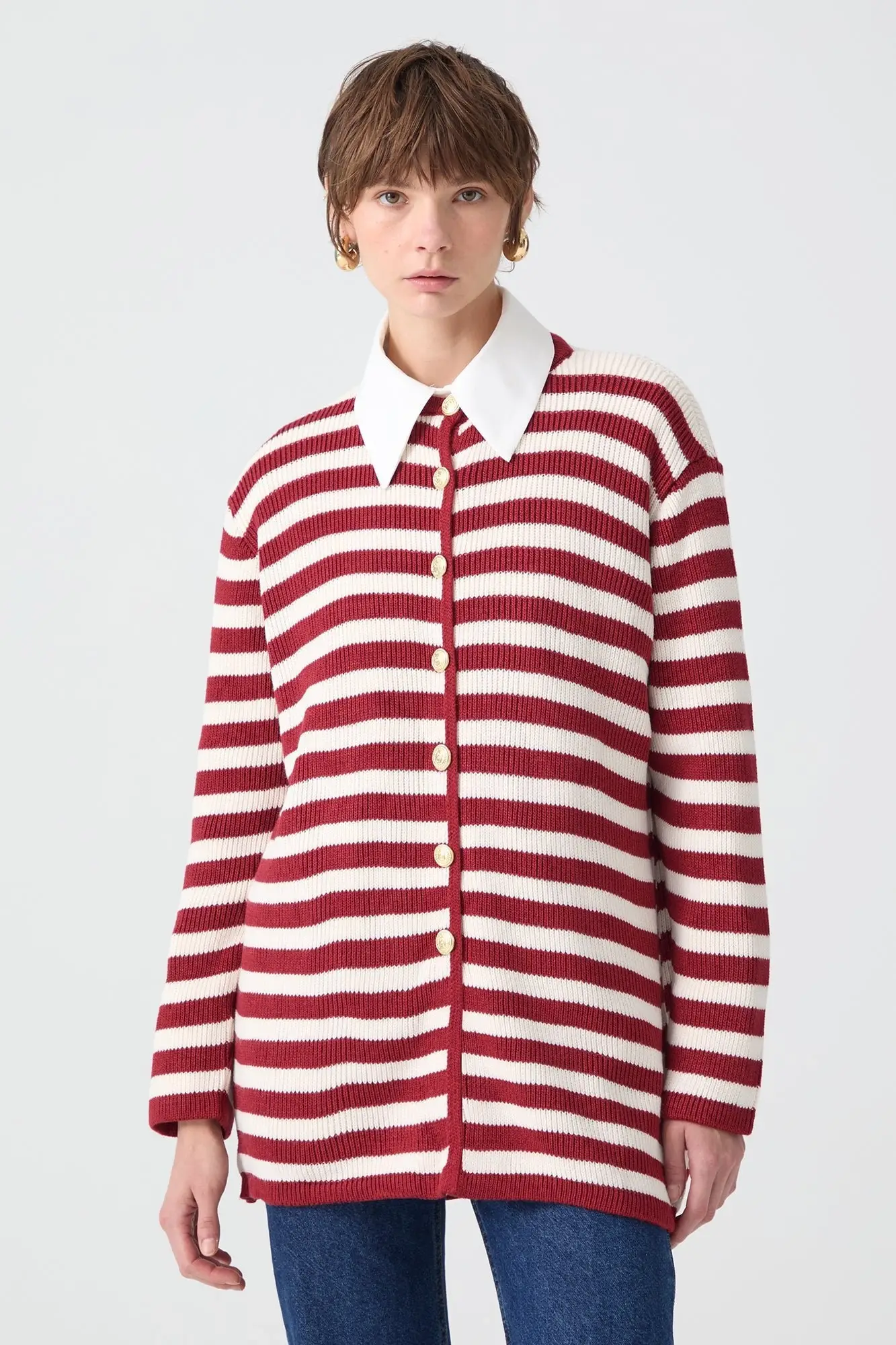 Touche Gold Düğmeli Çizgili Uzun Hırka 23F1XD166