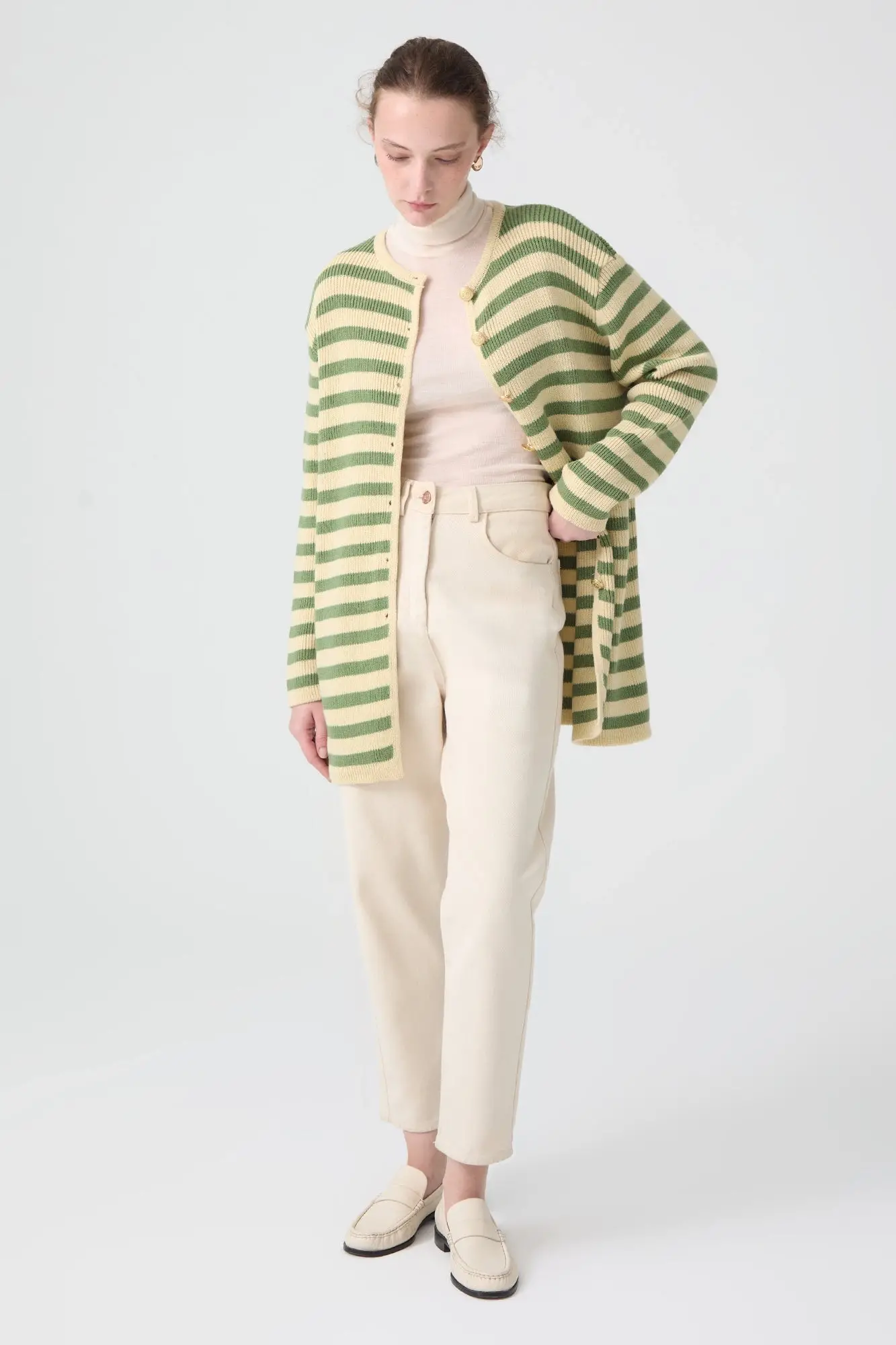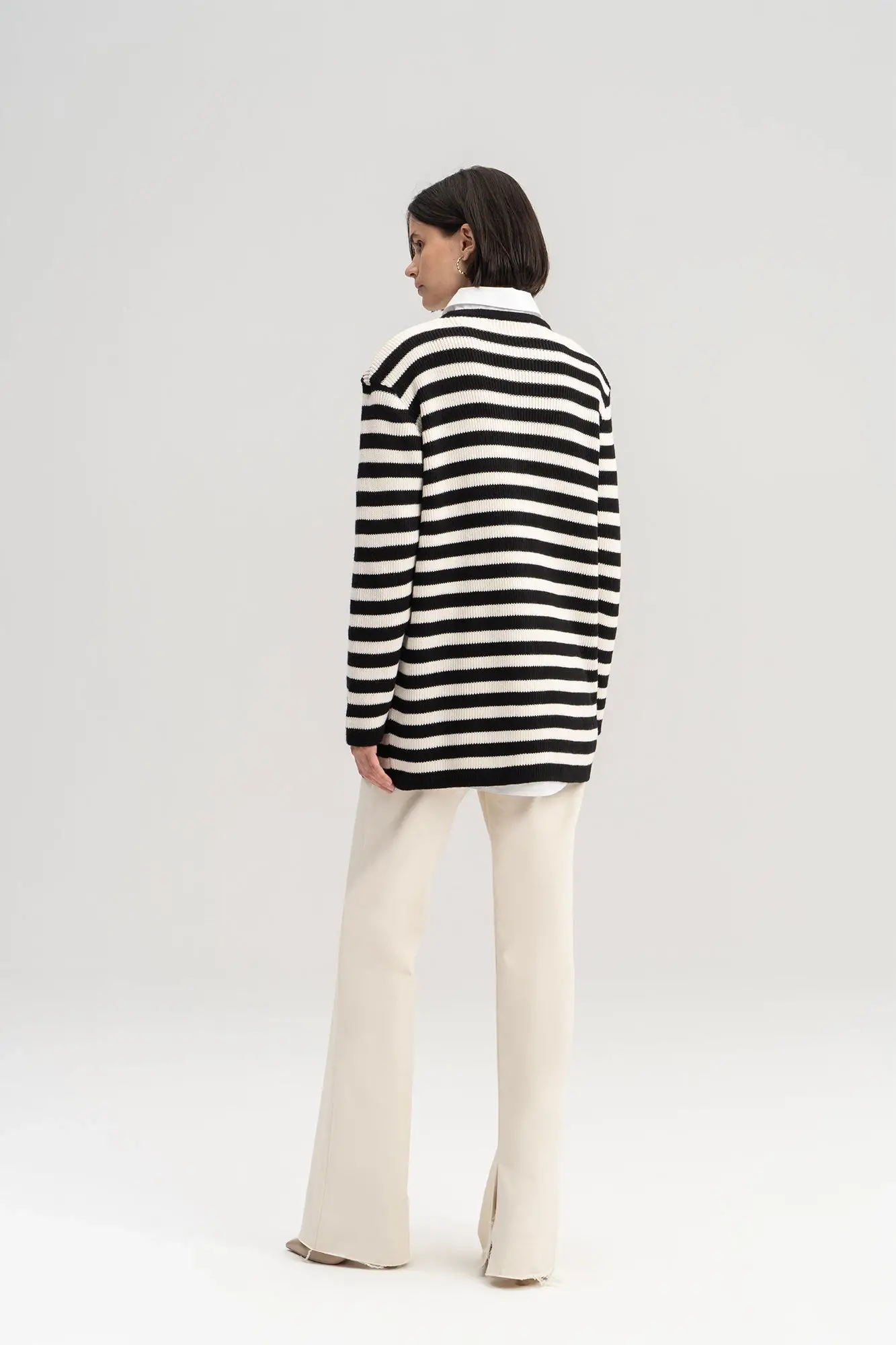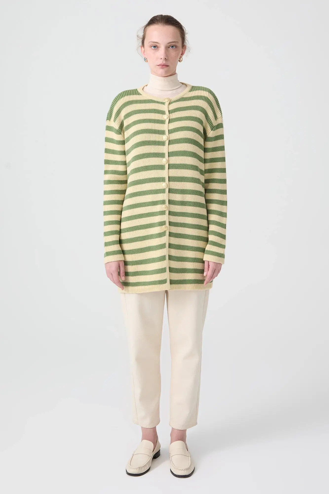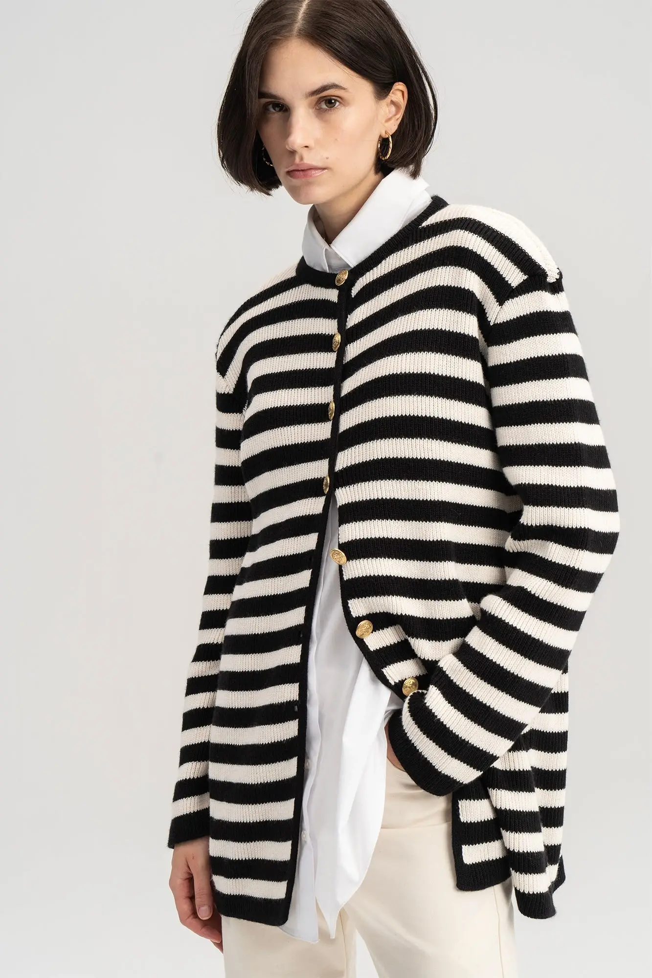 Touche Gold Düğmeli Çizgili Uzun Hırka 23F1XD166