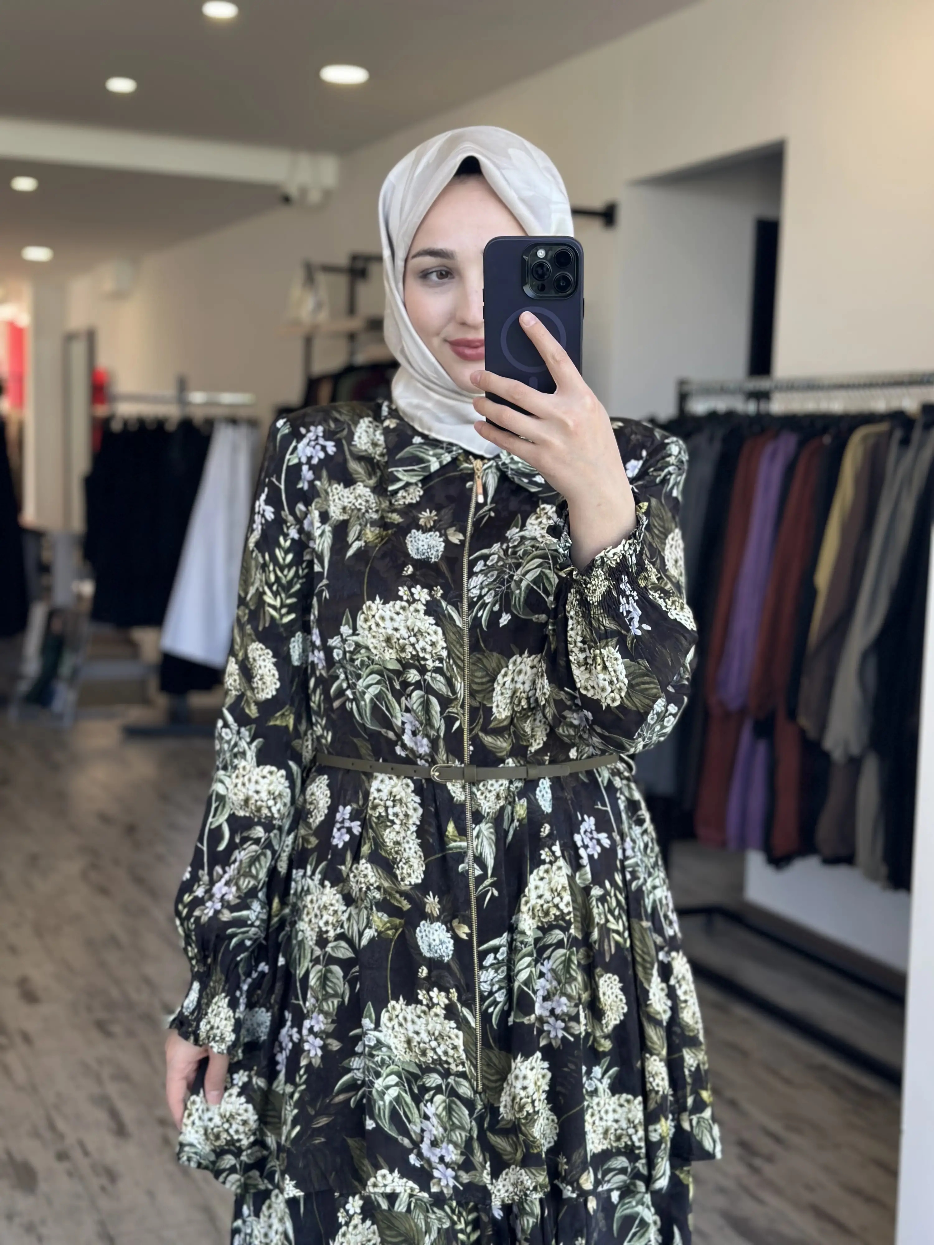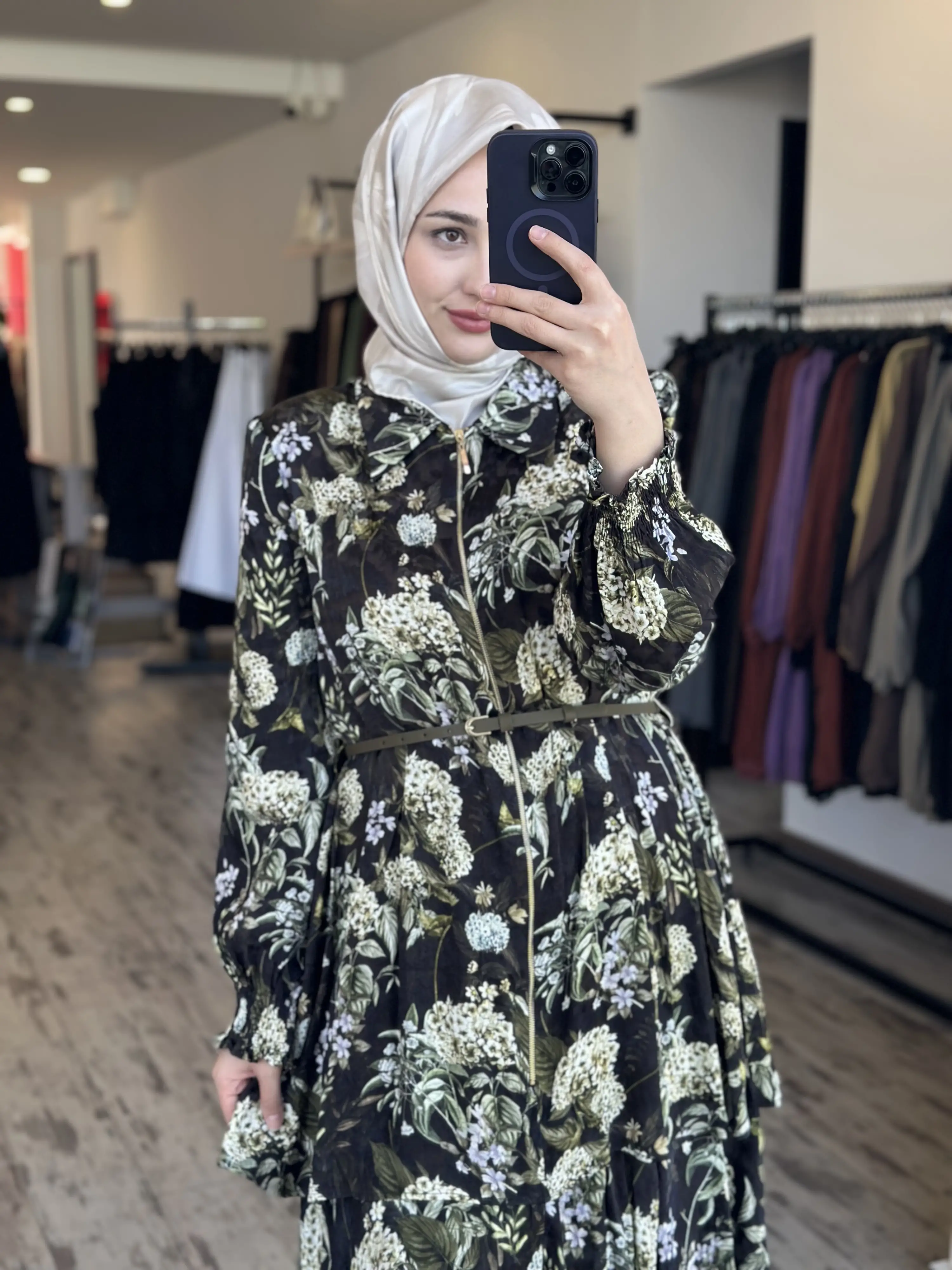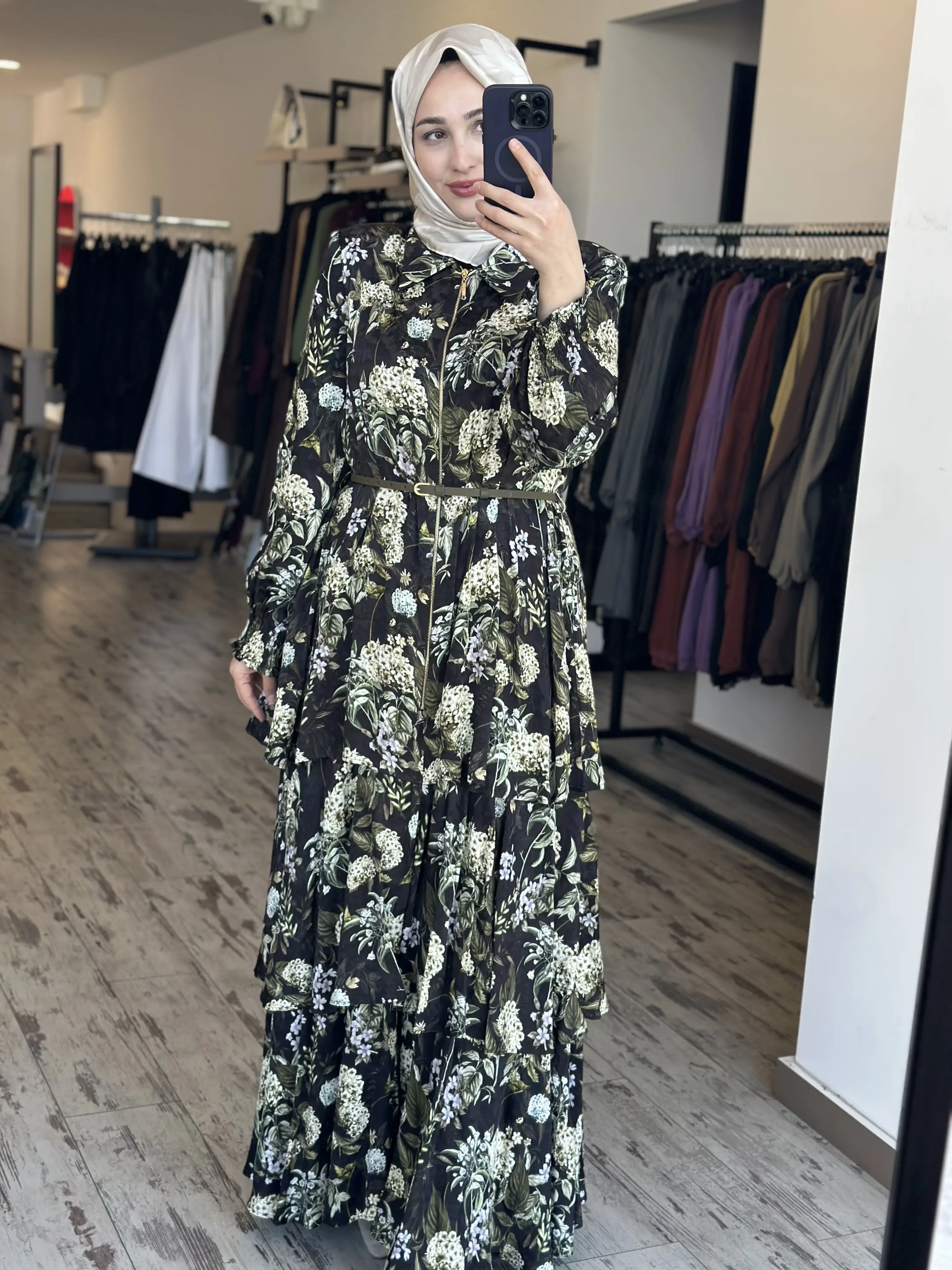 ÜRÜN DRAPE DESENLİ KATLI ÖNDEN FERMUARLI ELBİSEDİR