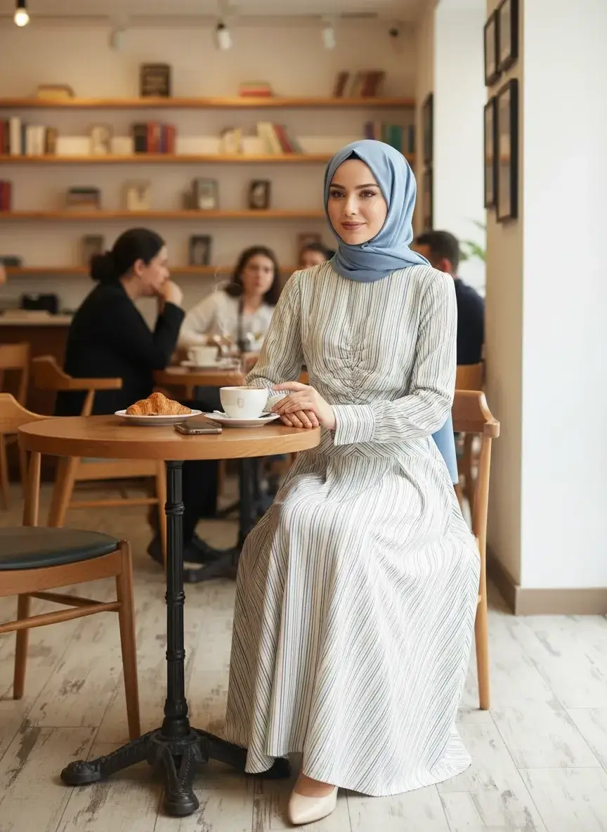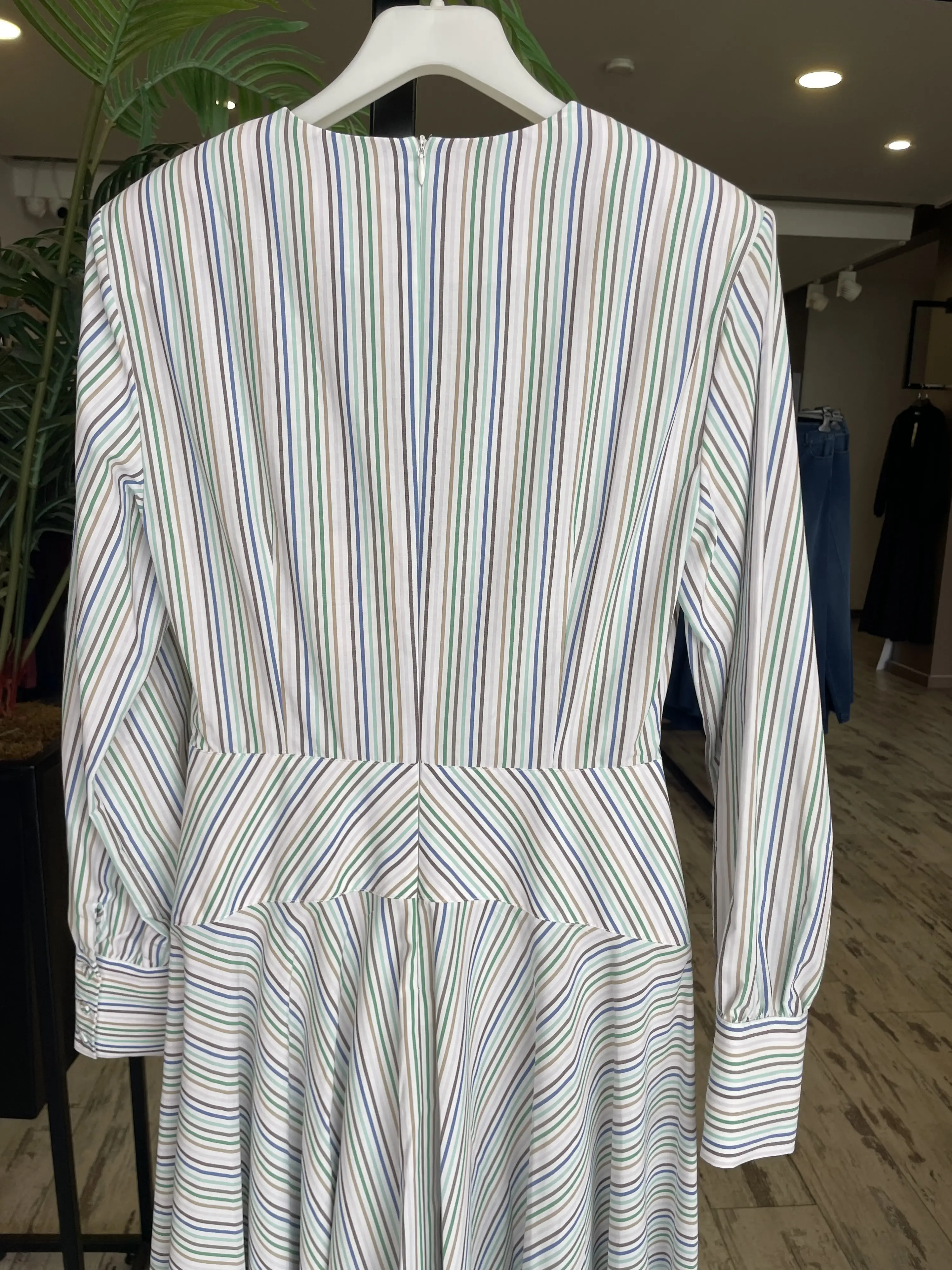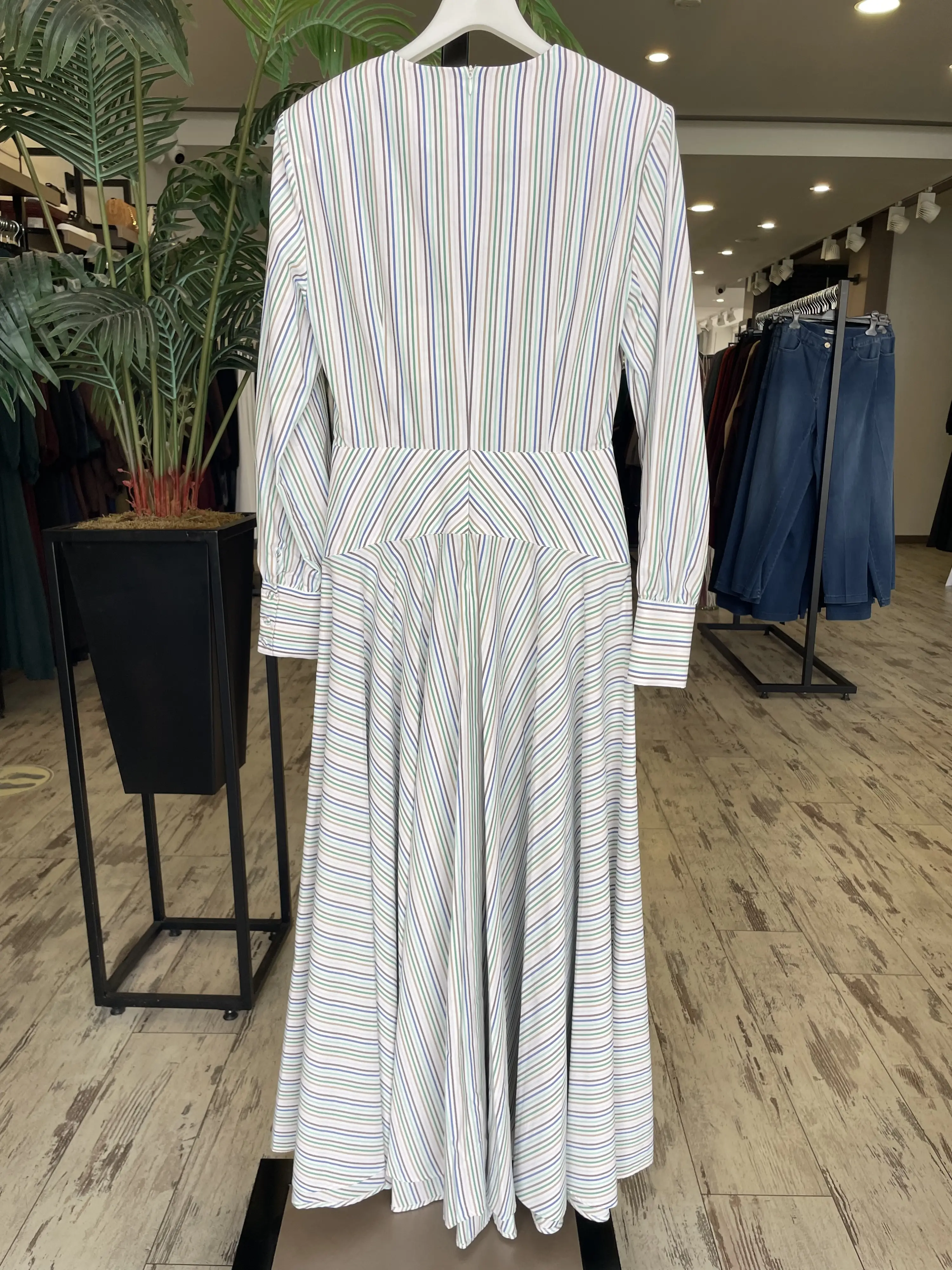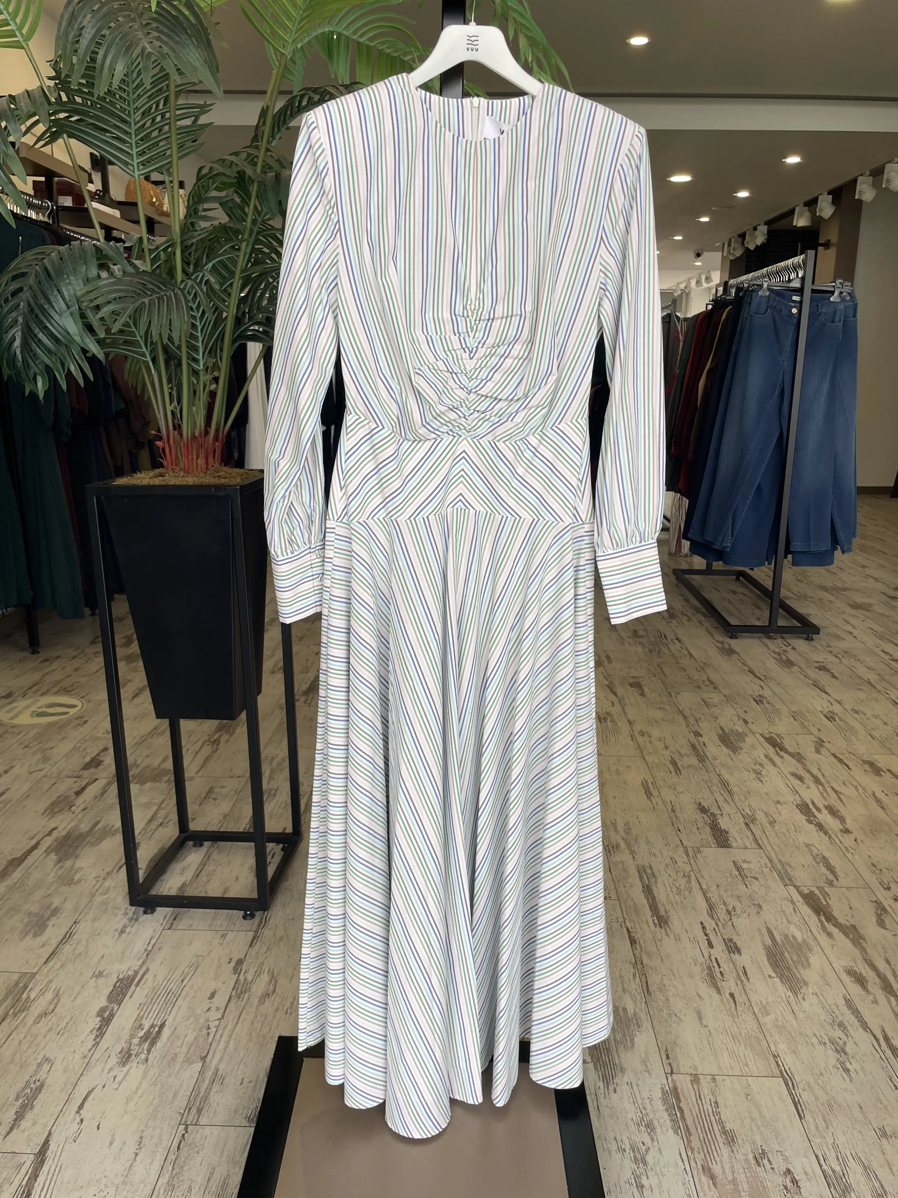 Vuu Çizgili Poplin Elbise