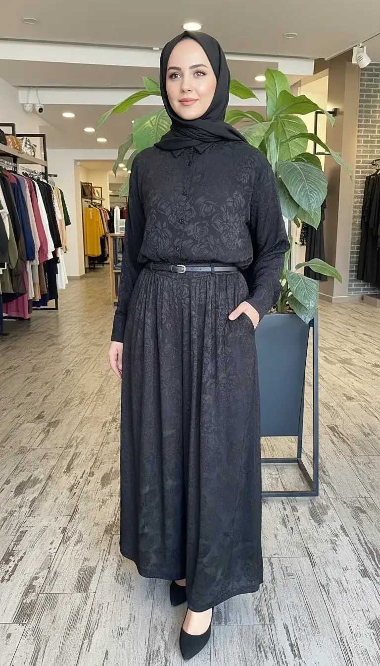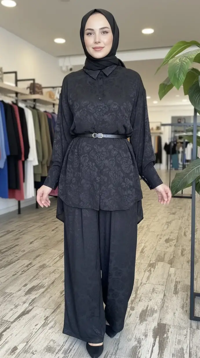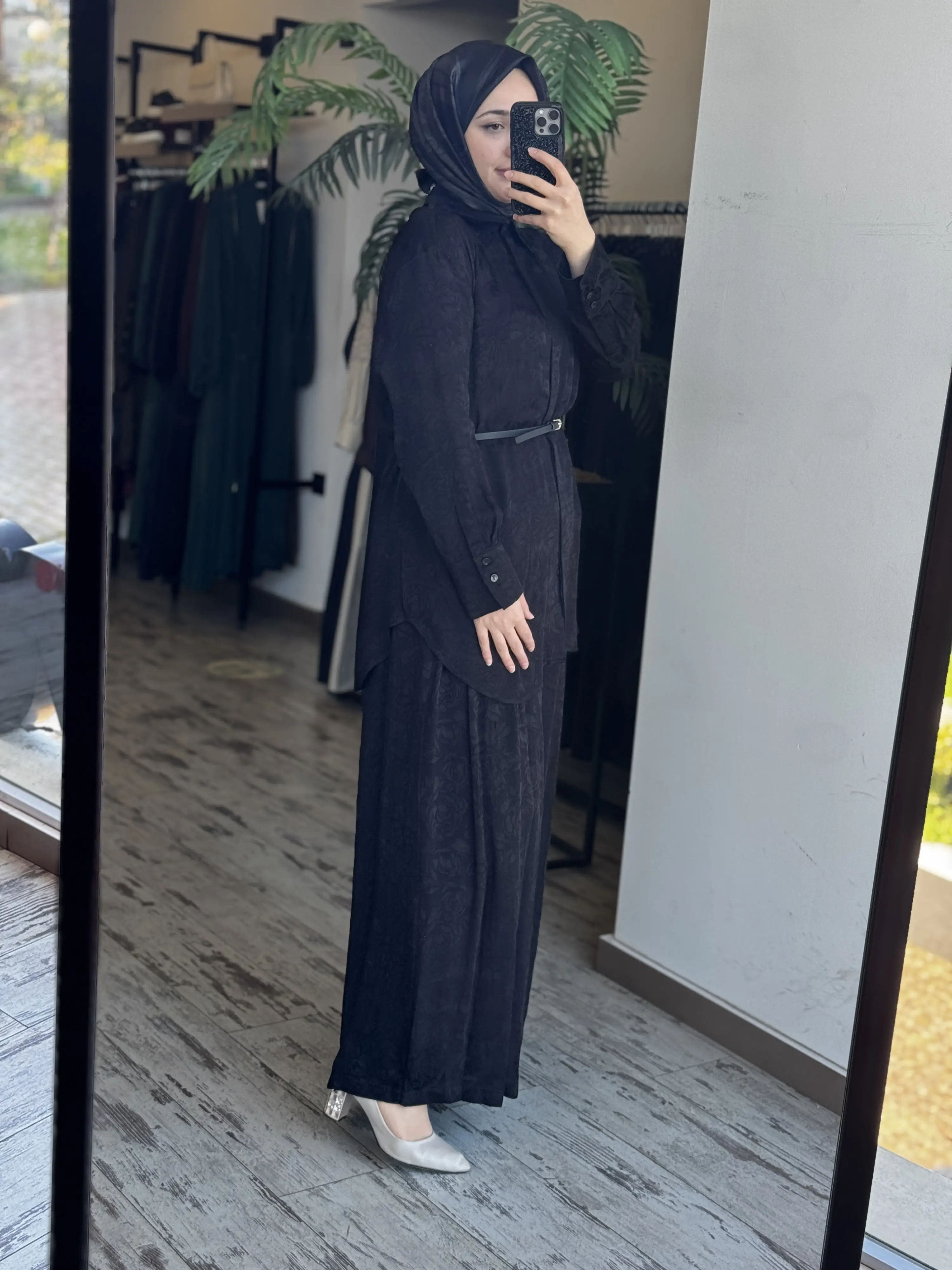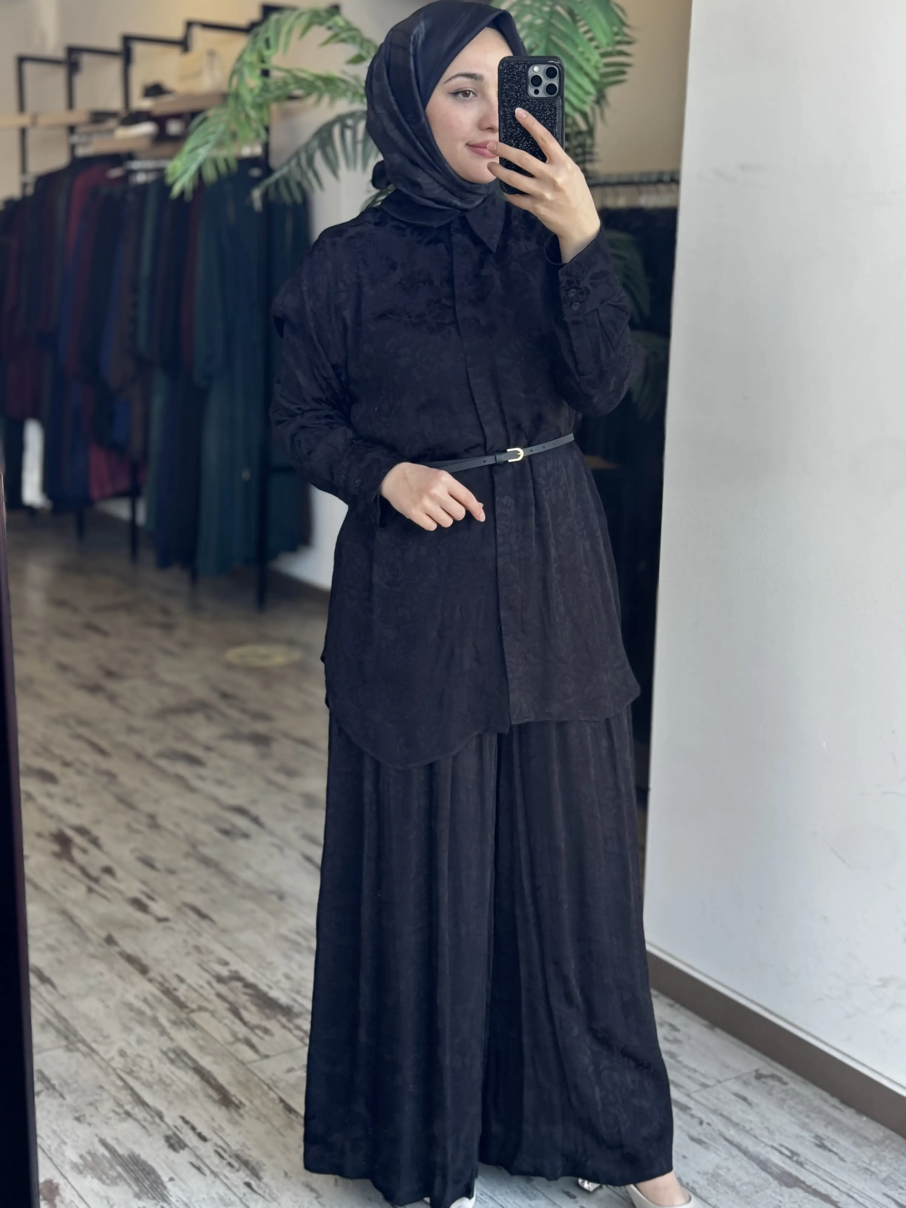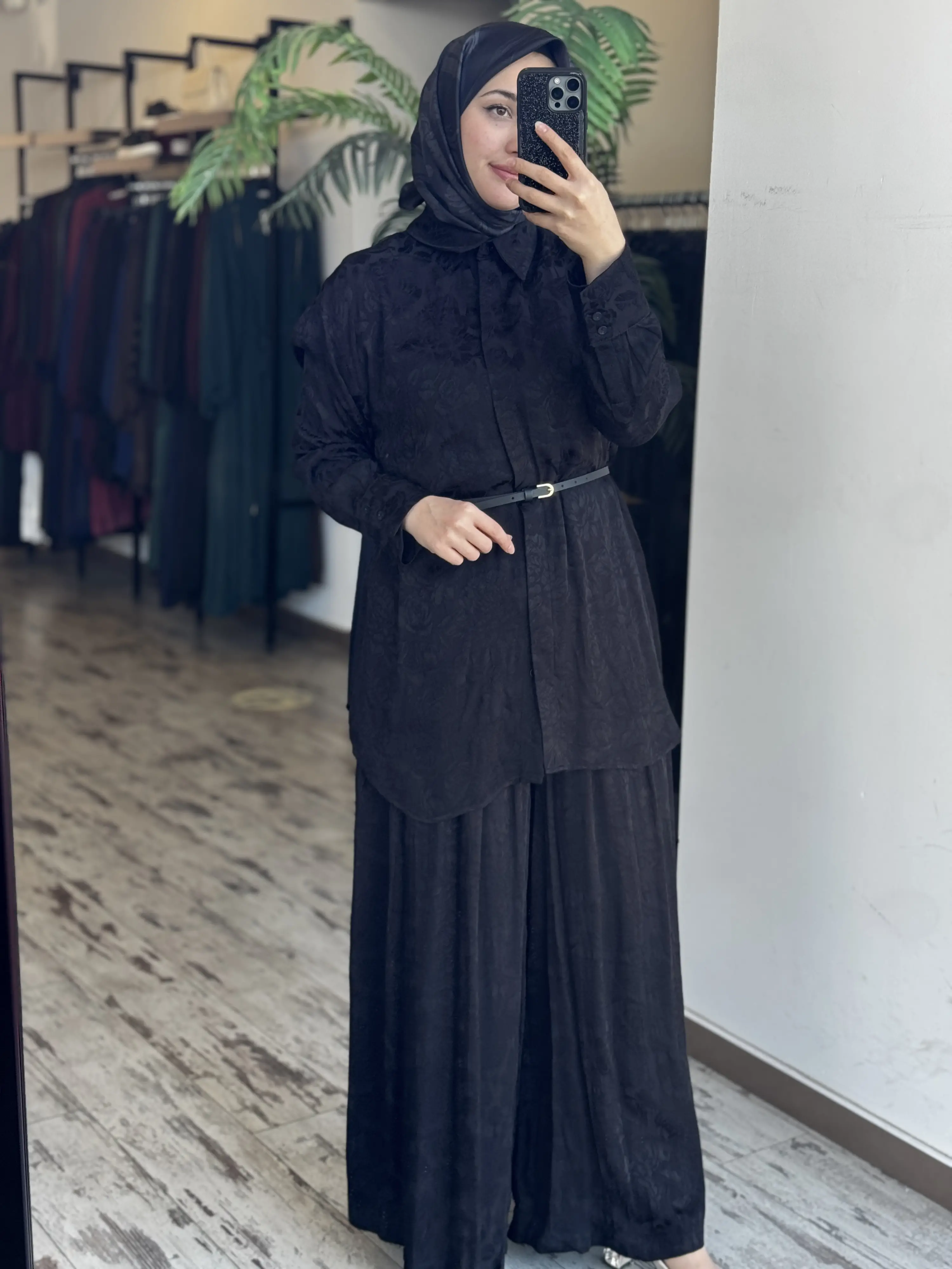 Vuu Jakarlı Siyah Gömlek Pantolon Takım