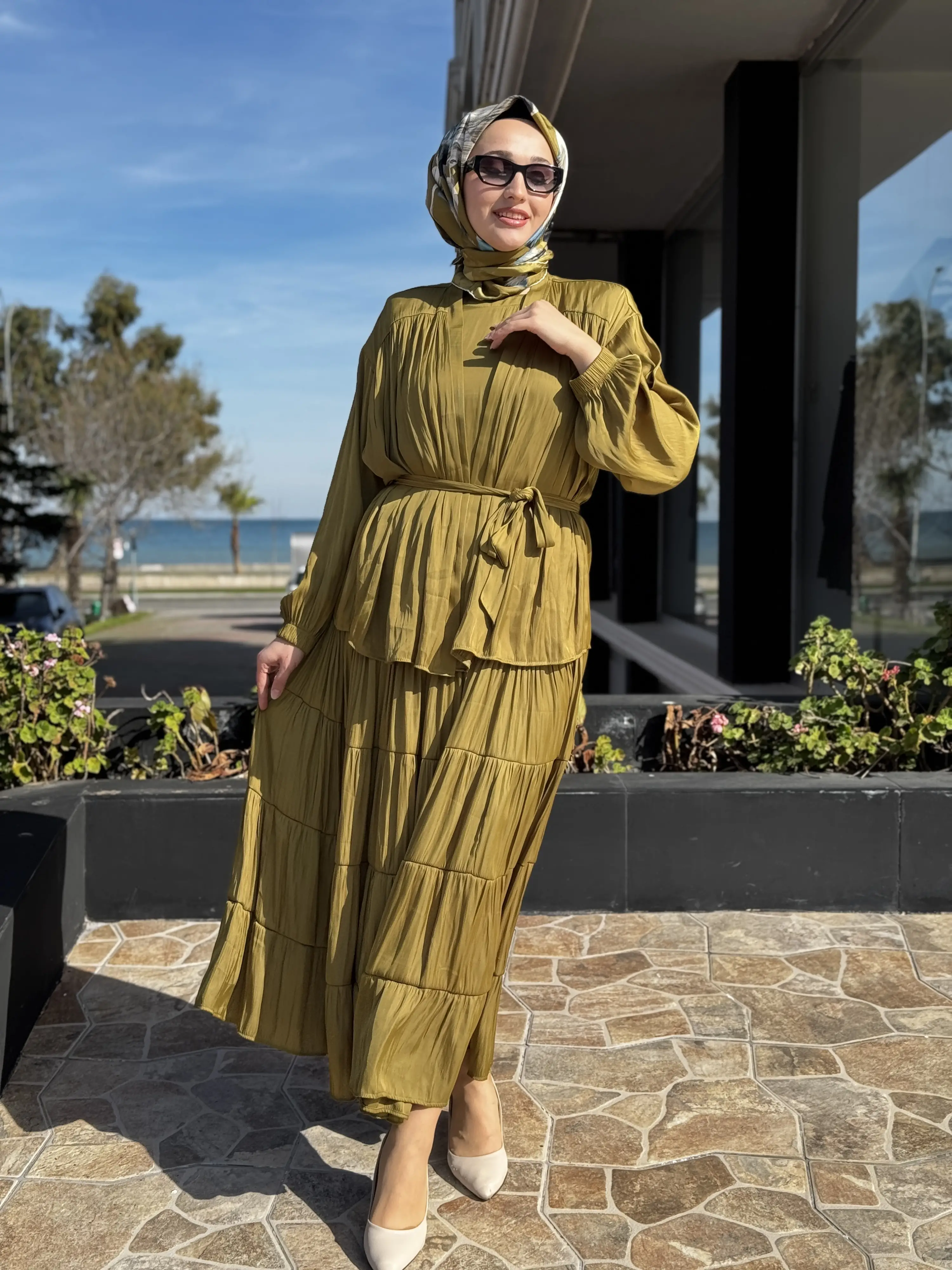 Almarwah Kraşlı Kolsuz Elbise Ceket Takım 202972