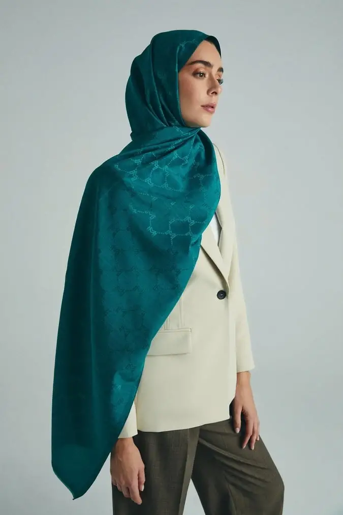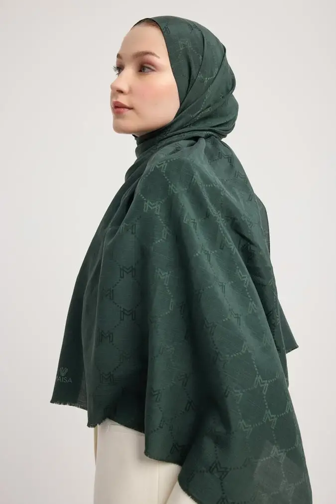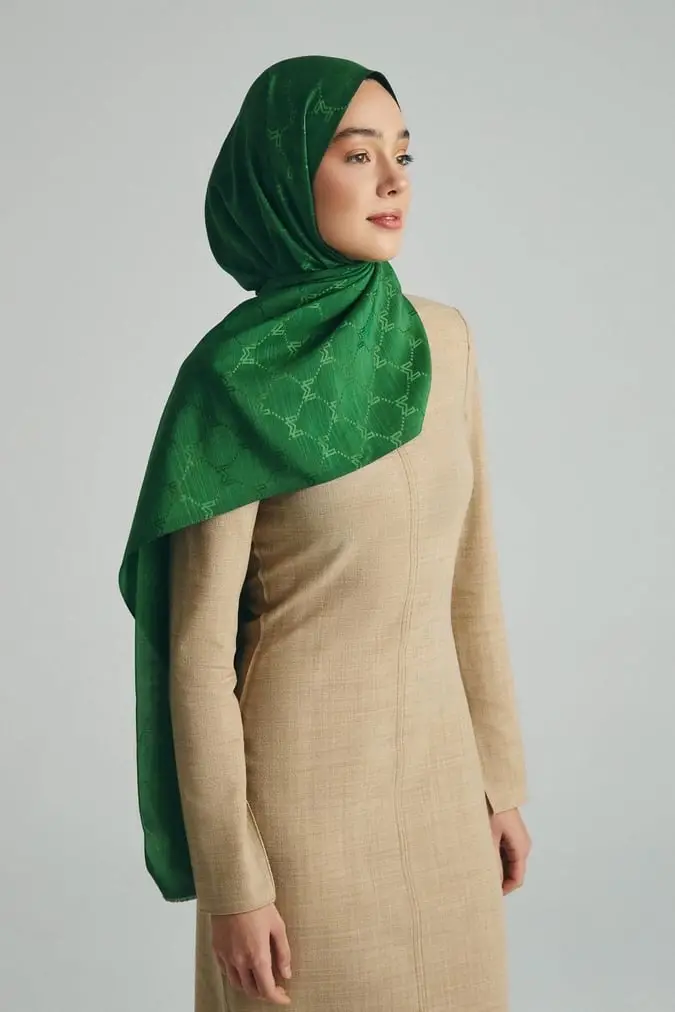 YEŞİL Maisa Neda Jakarlı Pamuk İpek Şal 70x190