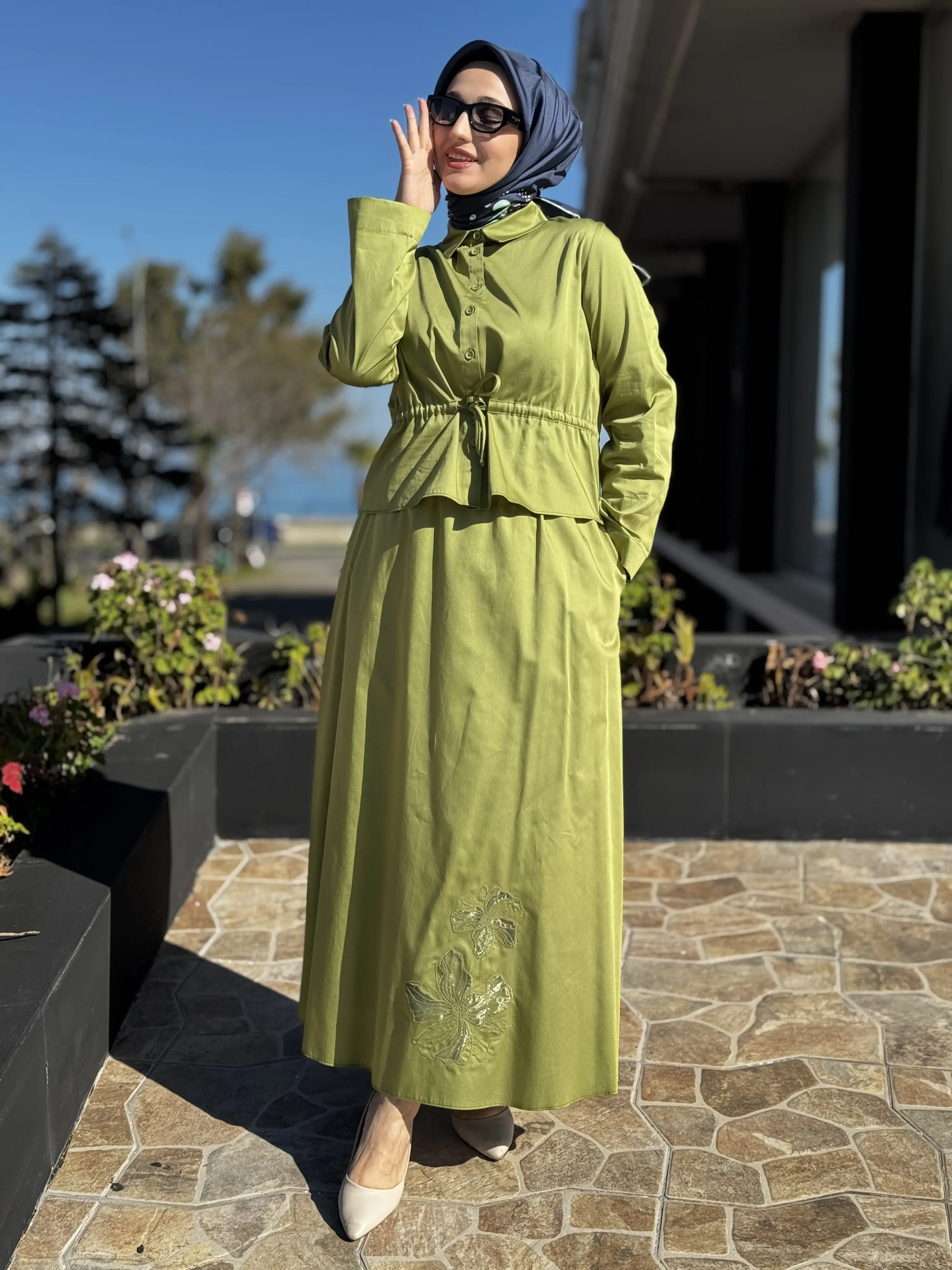Kayra Sırtı Nakışlı Gömlek Etek Takım