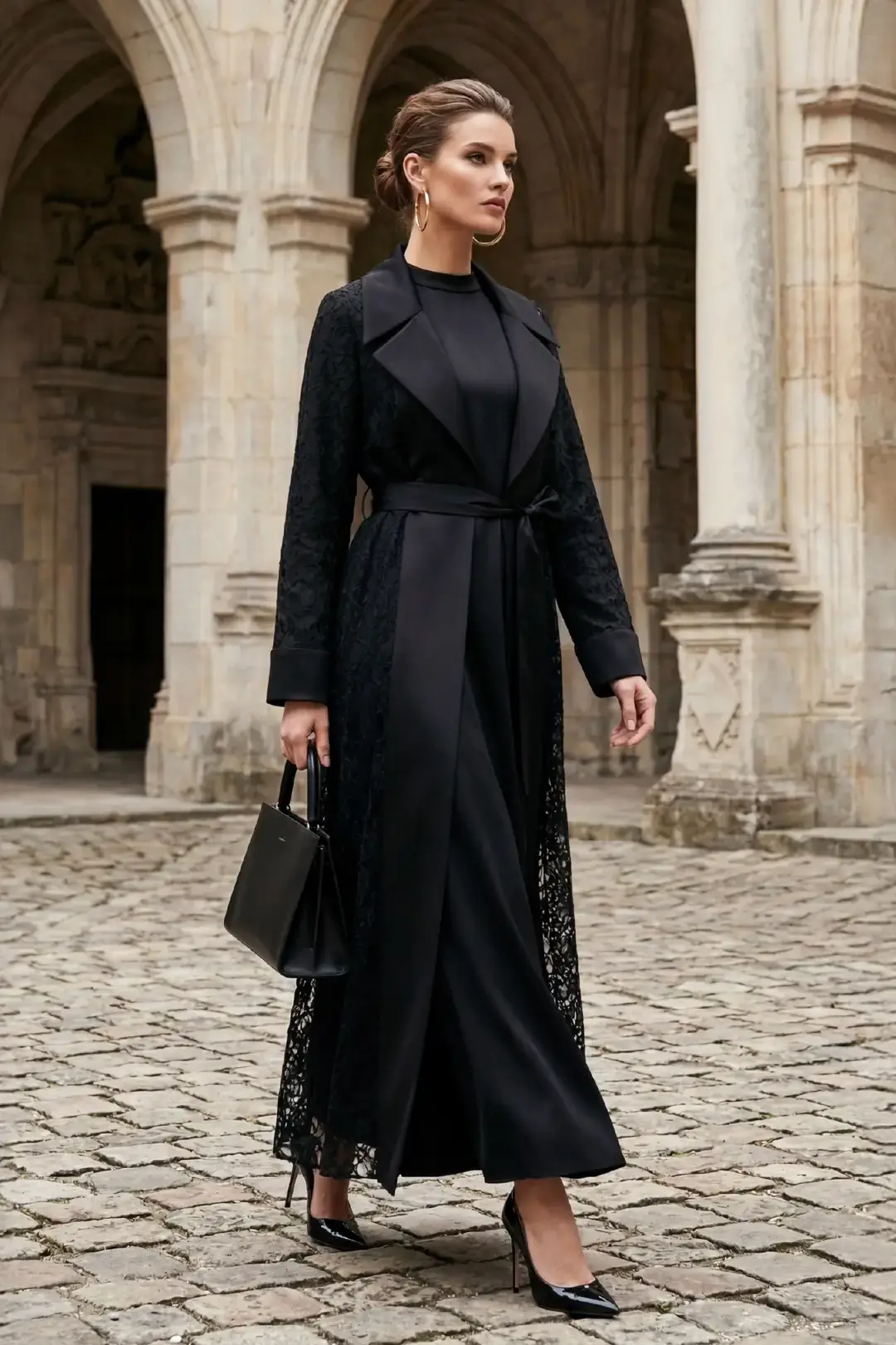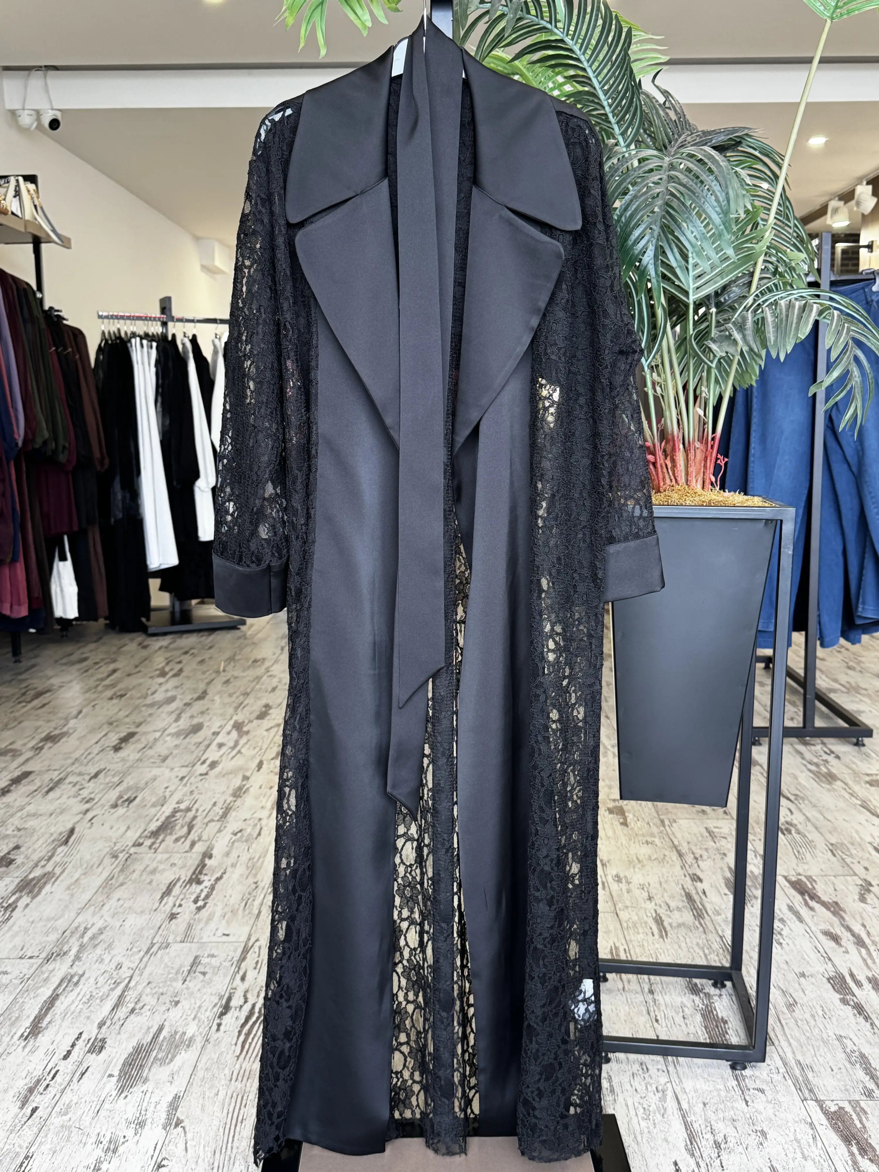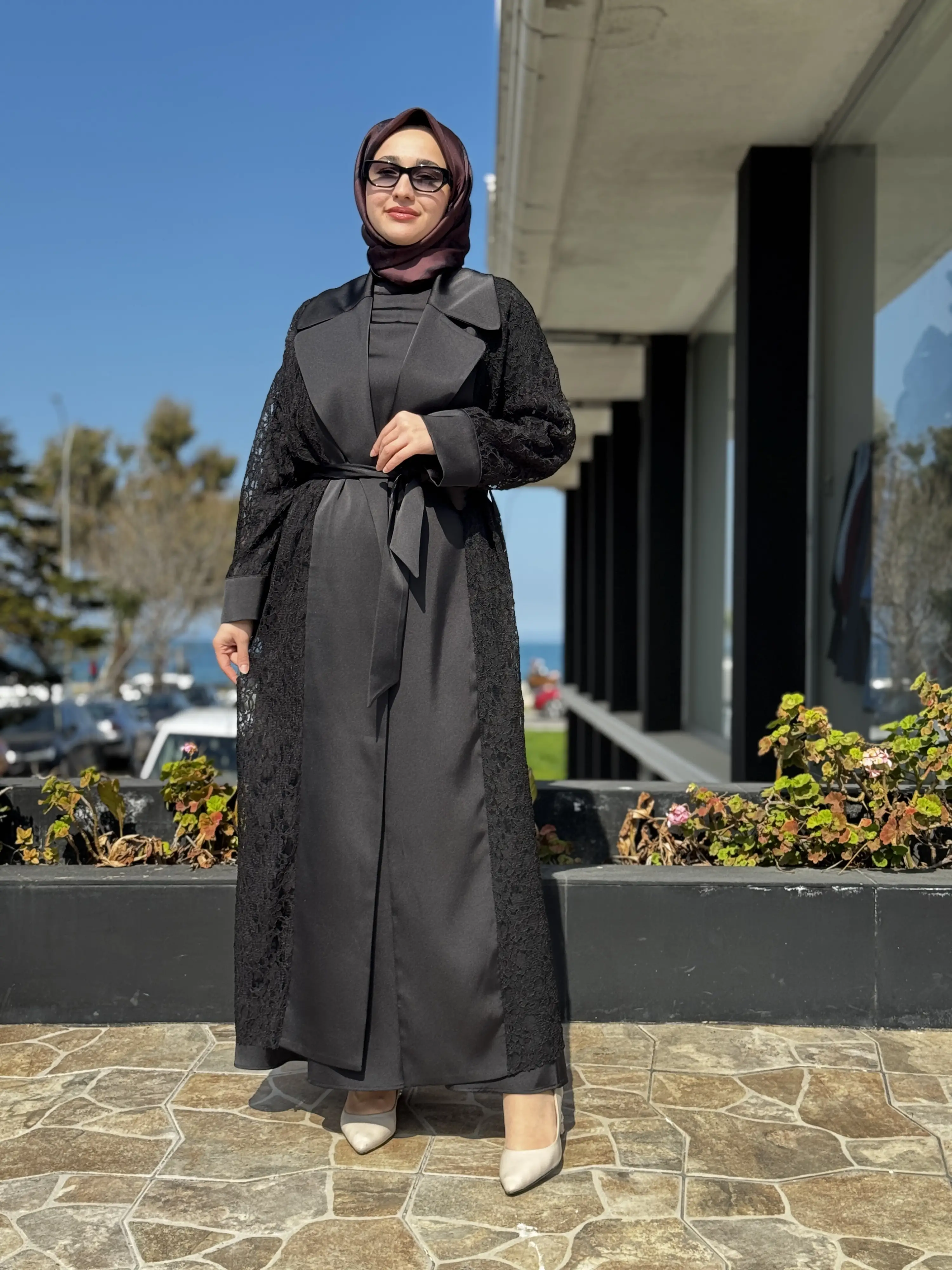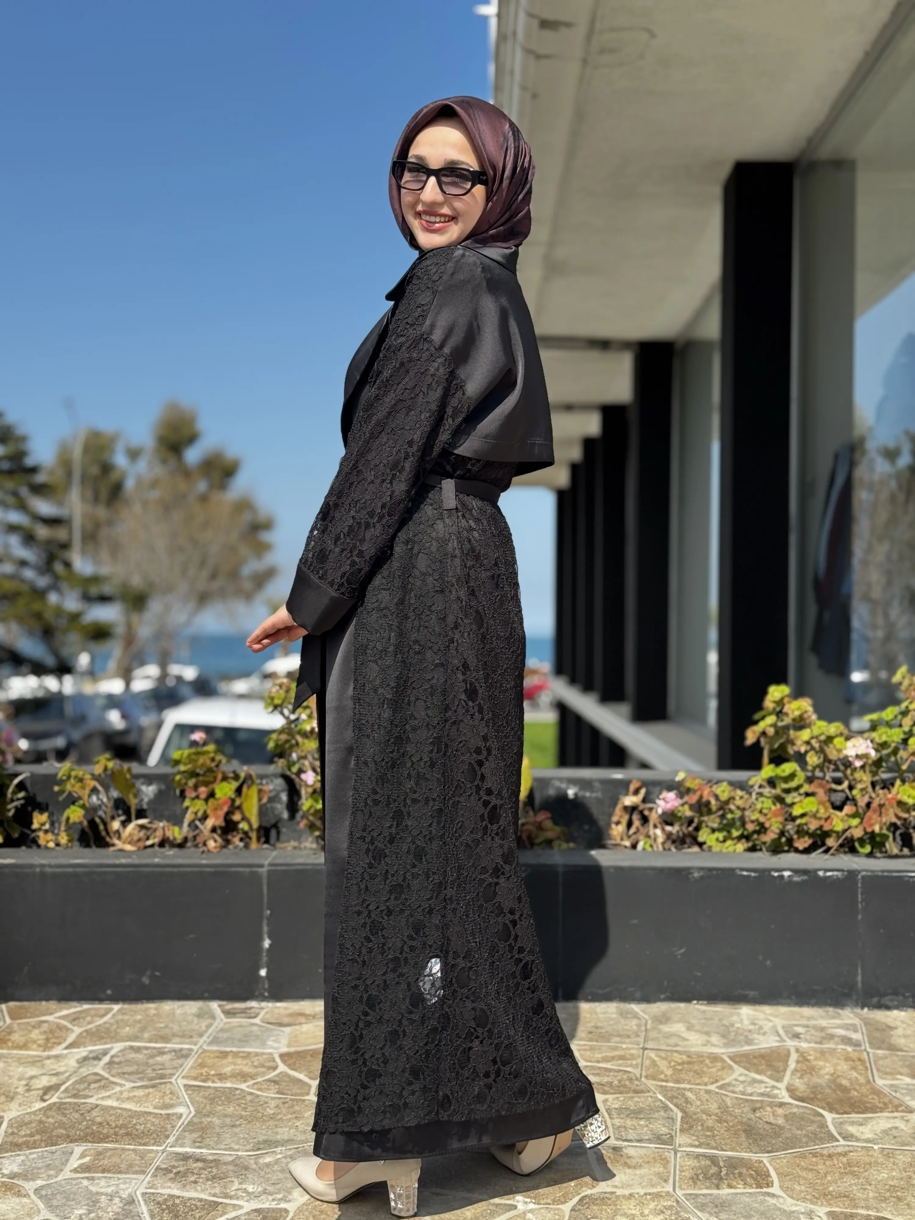 Zems Güpür ve Saten Kombinli Çık Abaya 2802