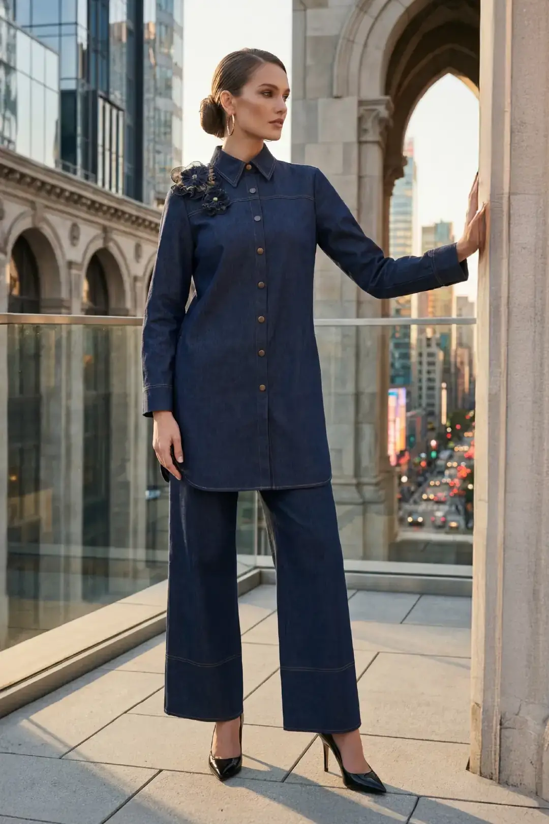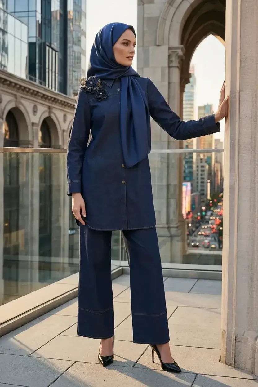 Zems Spor Dikiş Detaylı Denim Gömlek Pantolon Takım 2T070